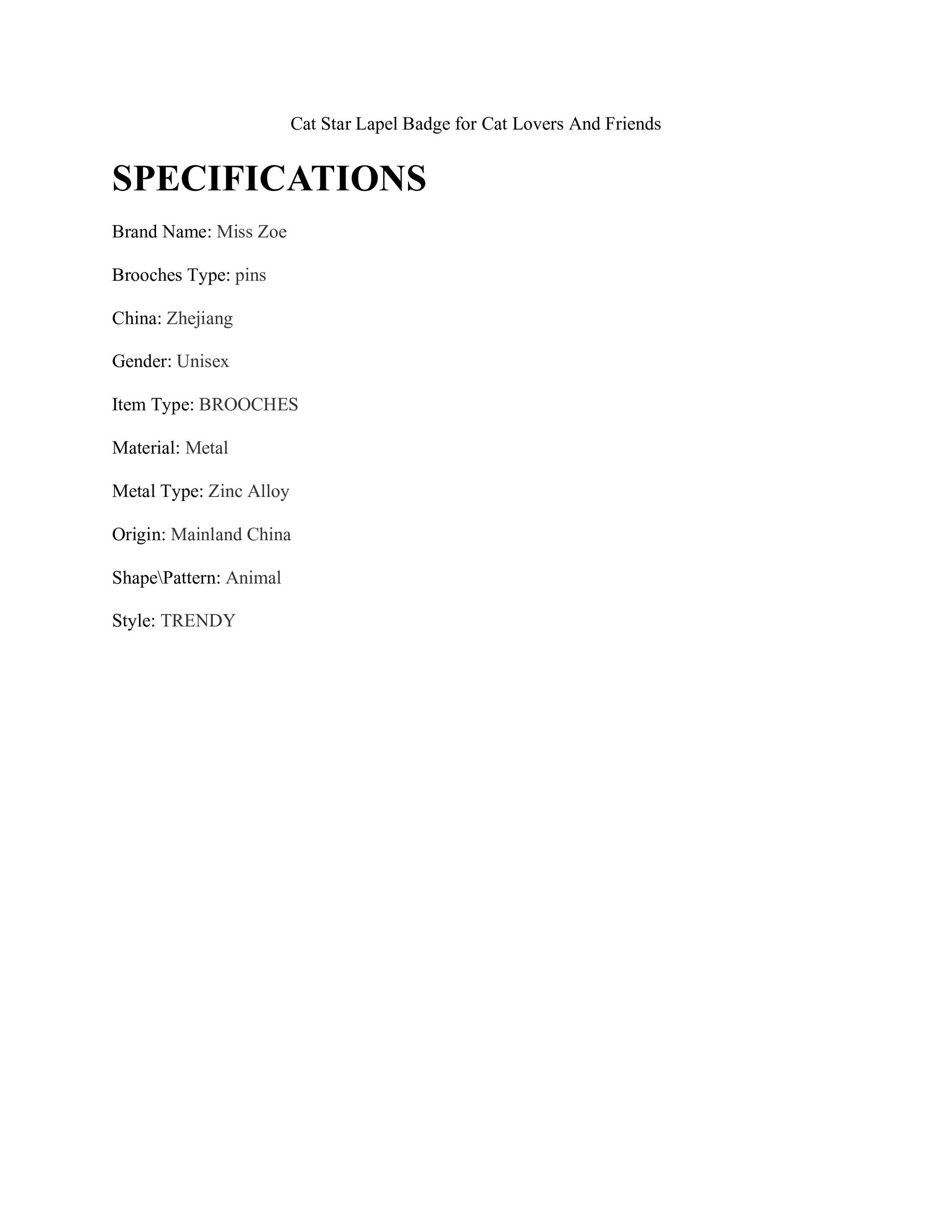 Cat Star Lapel Badge for Cat Lovers And Friends