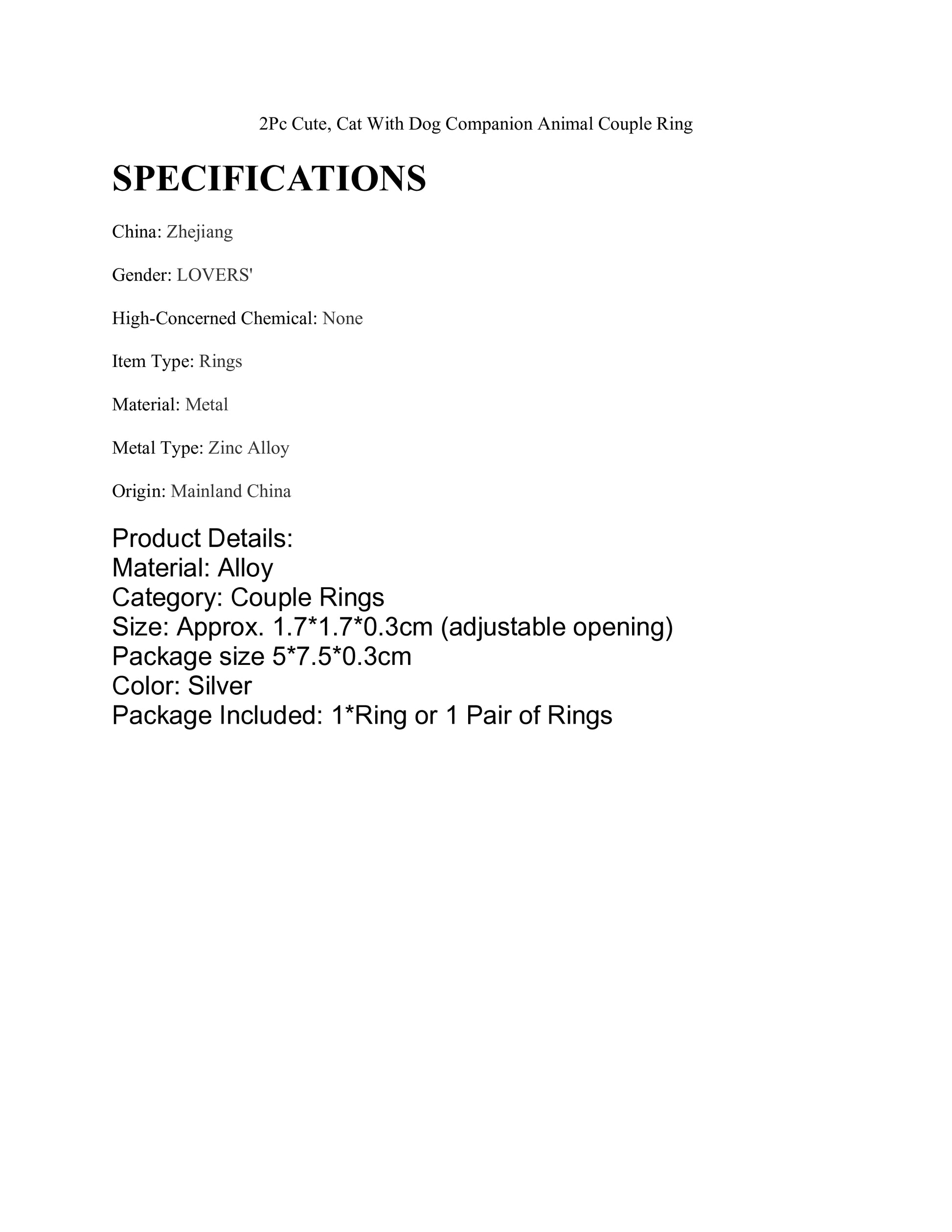 2Pc Cute, Stainless Steel, Cat With Dog, Companion Animal Couple Ring...Hypoallergenic