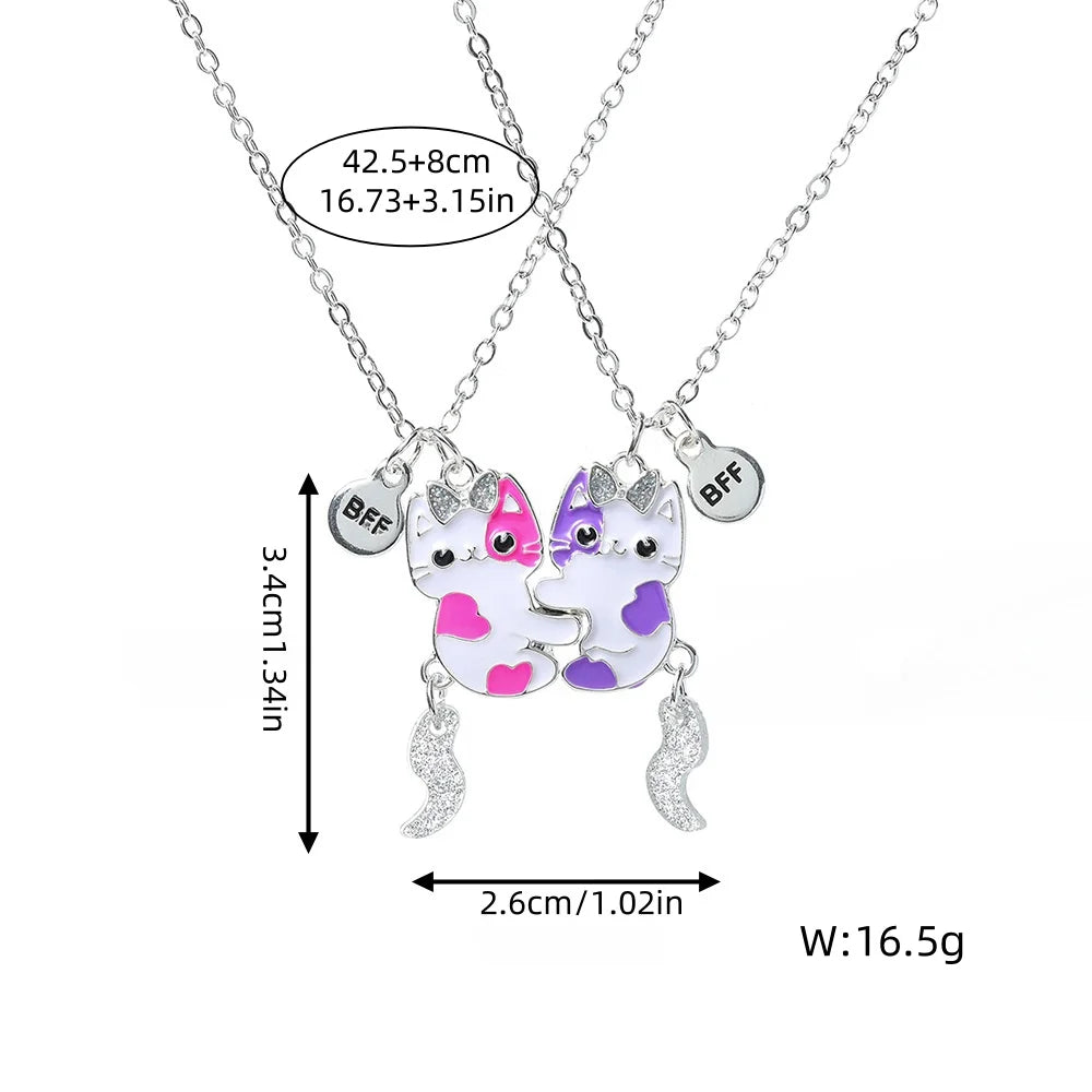 2Pc/set, Cute, Cat Shape Pendant Chain, Best Friends Necklace