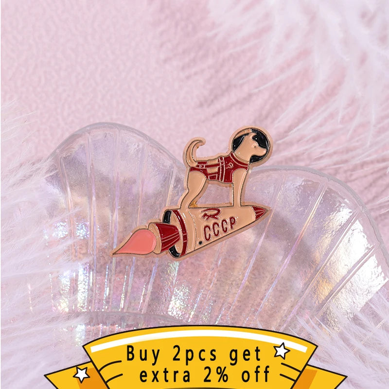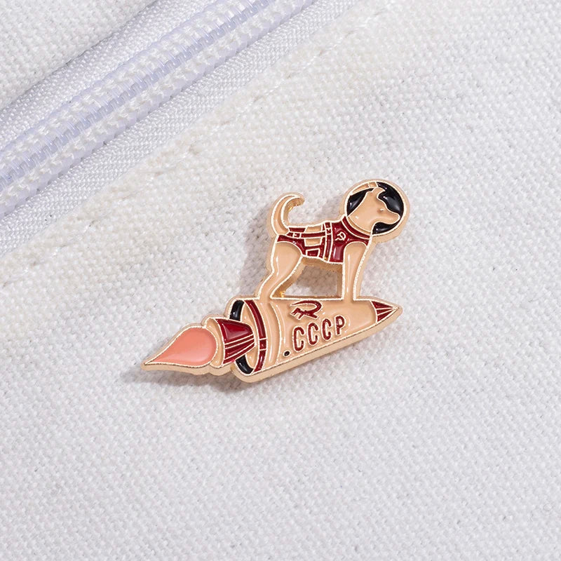Custom, Astronaut Space Rocket, Dog Enamel Lapel Badge