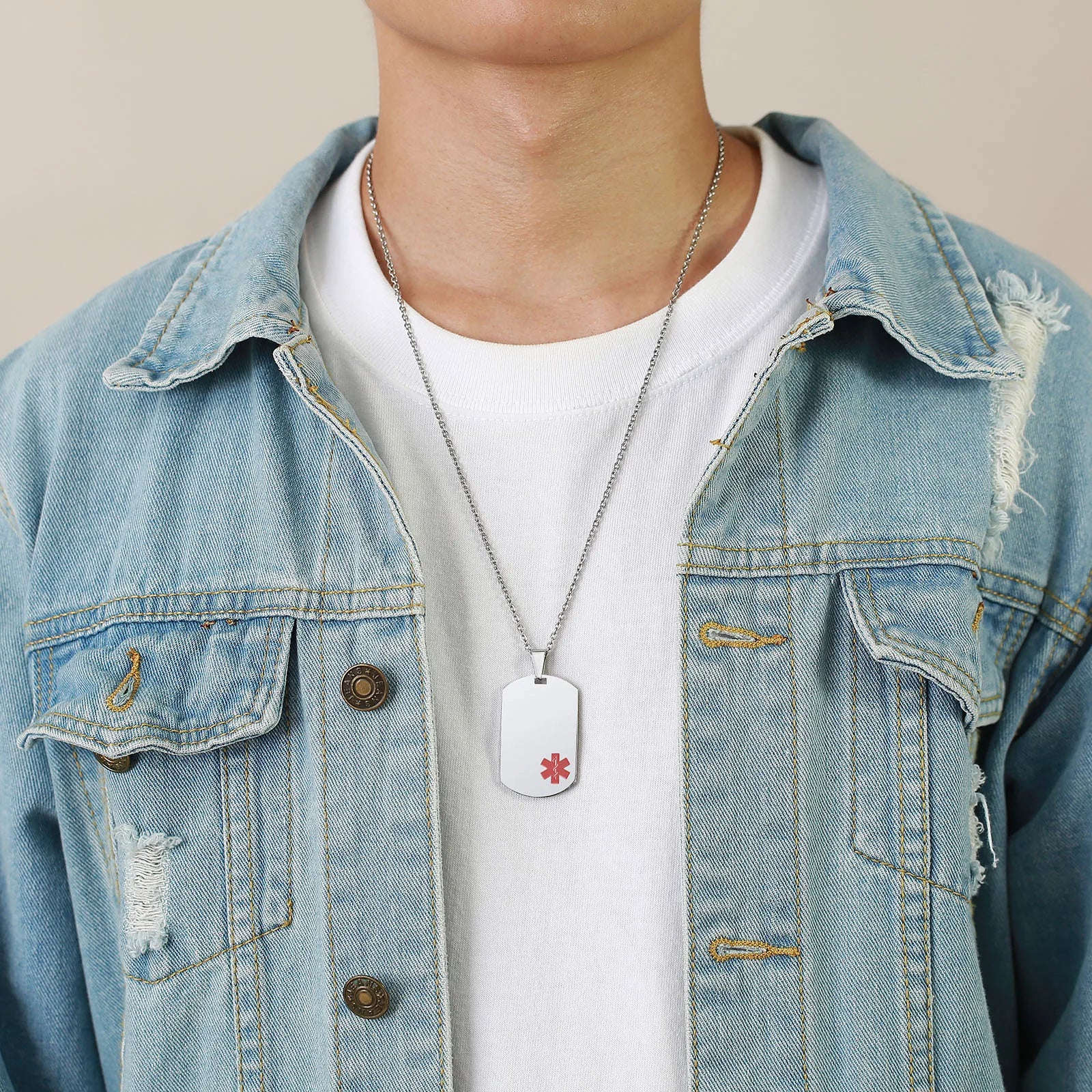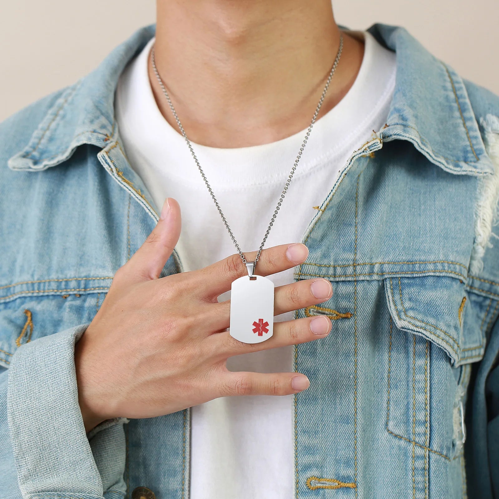 Medical Alert, Stainless Steel, Custom Engraved Military Necklace...Diabetic Patient Emergency