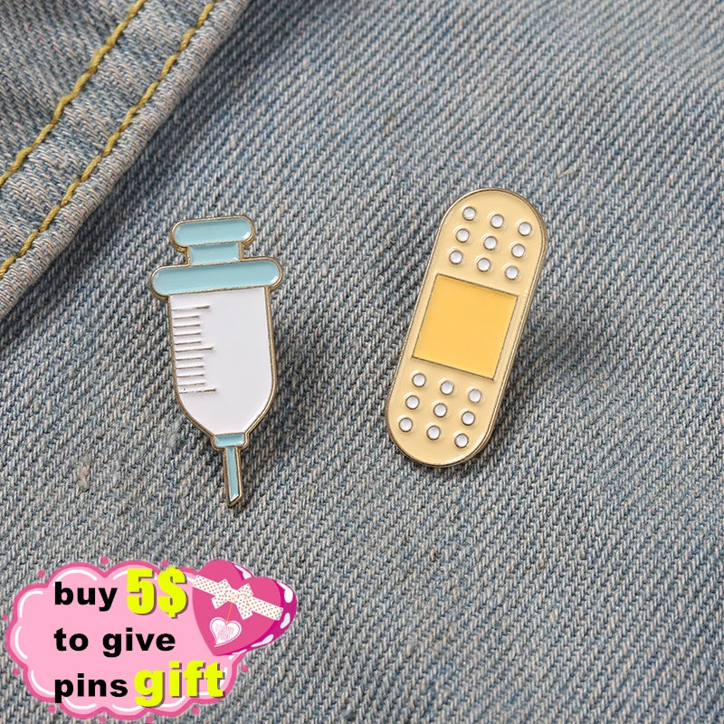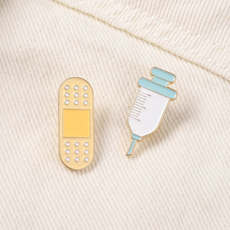 Medical Enamel Pins, Metal Syringe & Bandage, Jewelry Gifts for Doctor Or Nurse