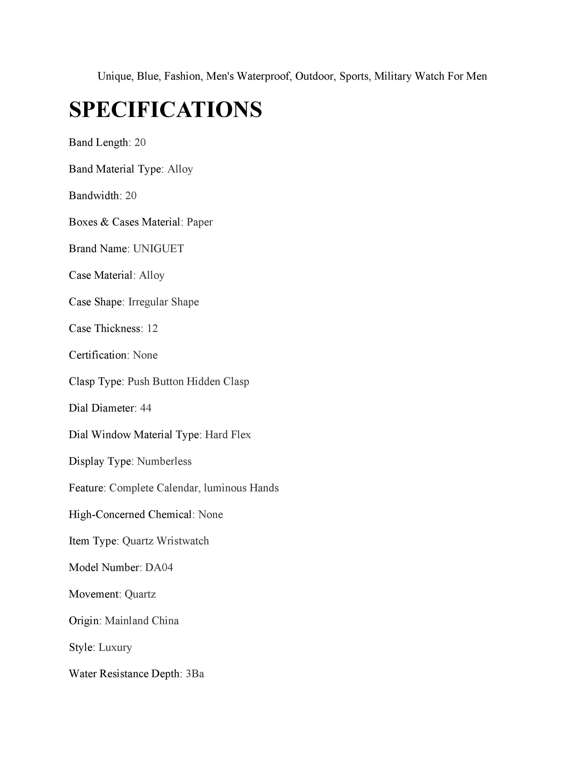 Unique, Blue, Fashion, Men's Waterproof, Outdoor, Sports, Military Watch For Men,