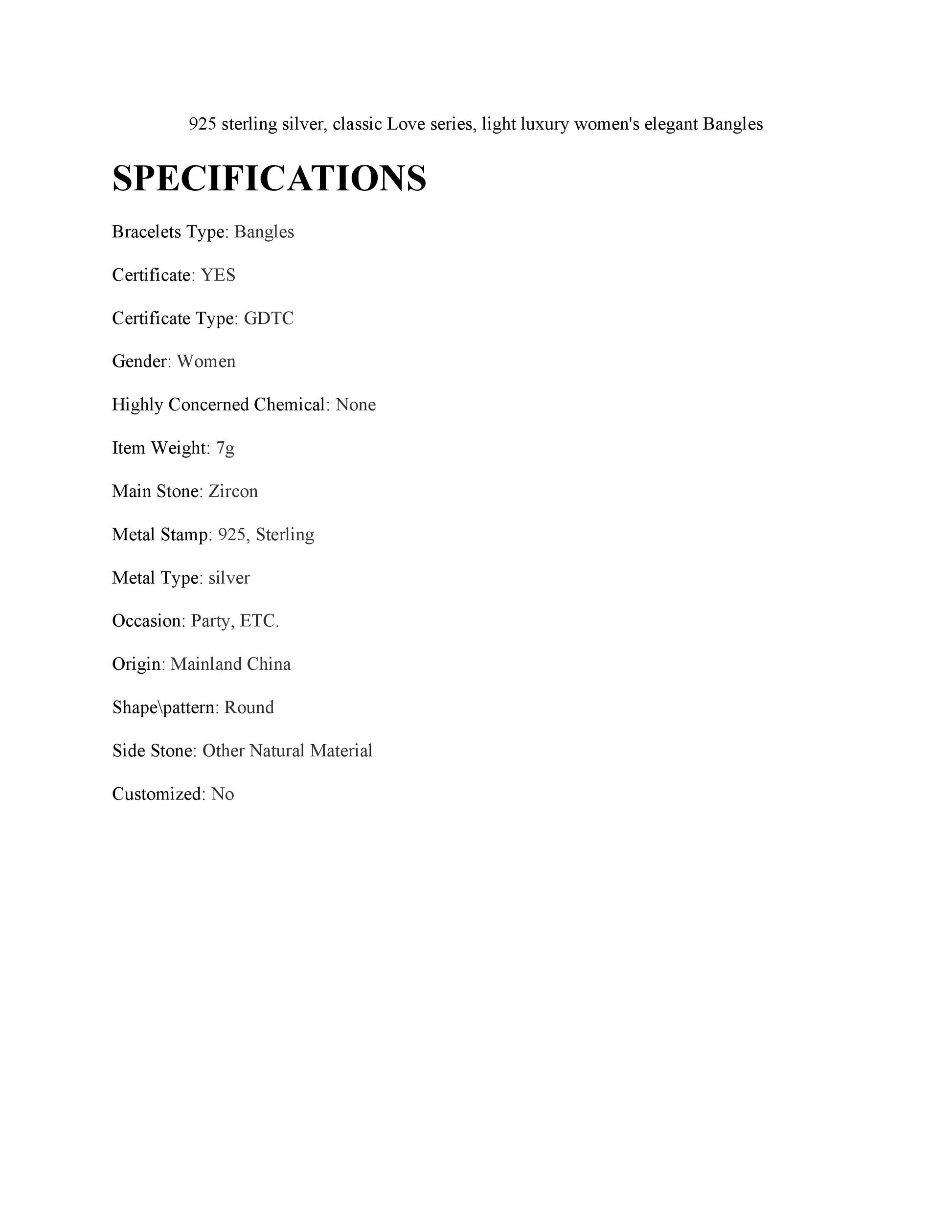 925 sterling silver, classic Love series, light luxury women's elegant Bangles