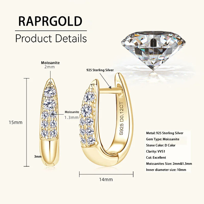 RAPRGOLD, GRA Certified Round Moissanite Hoop Earrings for Women. S9.25 Sterling Silver Earrings… Fine Jewelry Gift