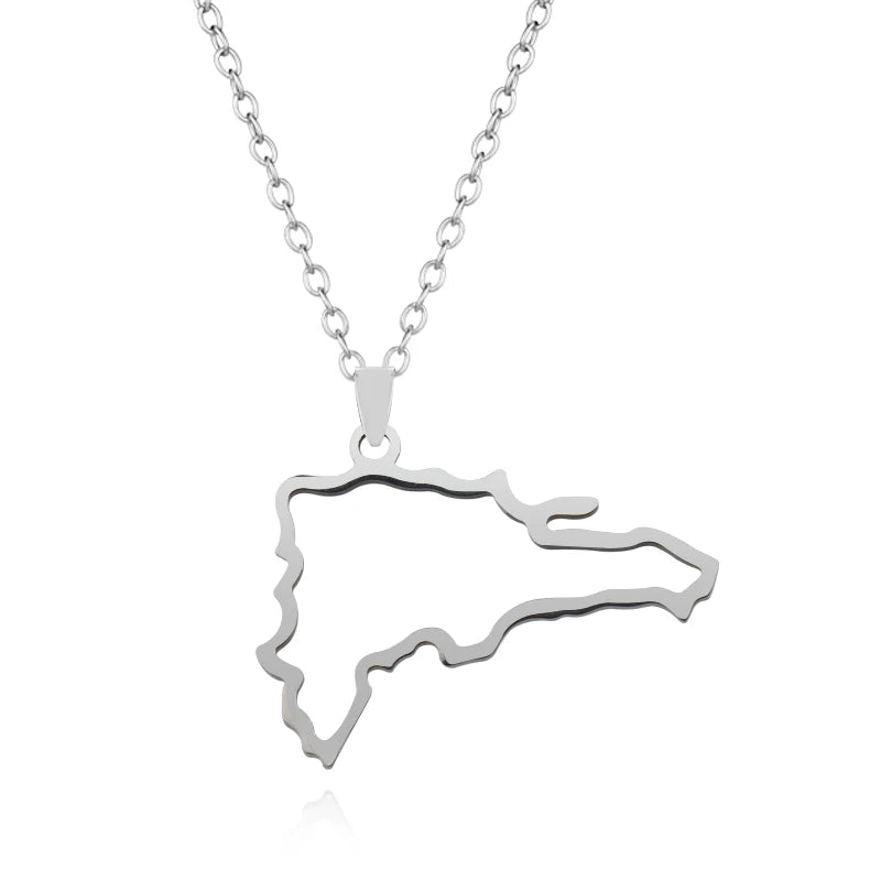 New, Dominican Map/Flag, Stainless Steel Pendant Necklace For Men & Women Jewelry Gift By YUMEI
