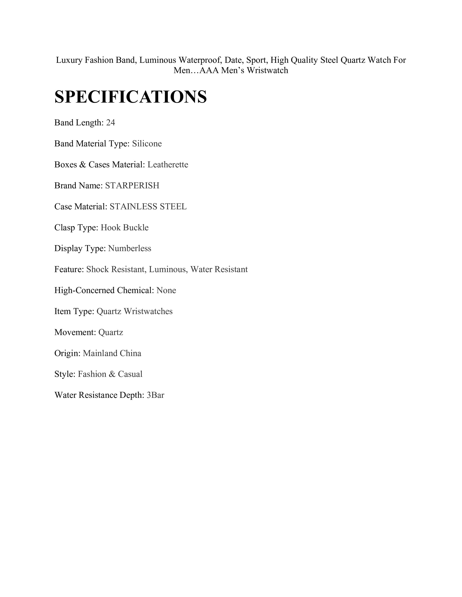 Luxury Fashion Band, Luminous, Waterproof, Date,...